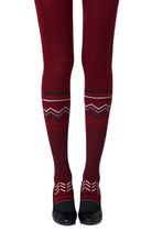 Zohara "Zig Zag Walk" Burgundy Print Tights