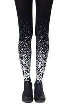 Dance like Mick Jagger. The Paint It Black tights feature a paint like print that looks perfect when paired with your fave black mini. Colour: Black tights with Grey Silver print. Thickness: 120 denier. Your entire leg will be getting Zohara love with the allover prints. Both sides are not created equal with allover tights so please look at the foot of the tights before wearing to ensure you don't step on the print. (The front print will be lower than the back.) No doubt you will shine with our metallic prints. Please note that these prints require extra care when washing and will naturally fade with wear. Unless they have X-ray vision no one will be able to see through these opaque tights. Hand print no two are the same.