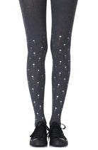 Dash from the yacht to the beach in Palm Beach tights that feature palm trees in a metallic allover print. You are shining darling. Colour: Heather Grey tights with Silver print. Thickness: 120 denier. Your entire leg will be getting Zohara love with allover prints. Both sides are not created equal with allover tights so please look at the foot of the tights before wearing to ensure you don't step on the print. (The front print will be lower than the back.) No doubt you will shine with our metallic prints. Please note that these prints require extra care when washing and will naturally fade with wear. Unless they have X-ray vision no one will be able to see through these opaque tights. Hand print no two are the same.