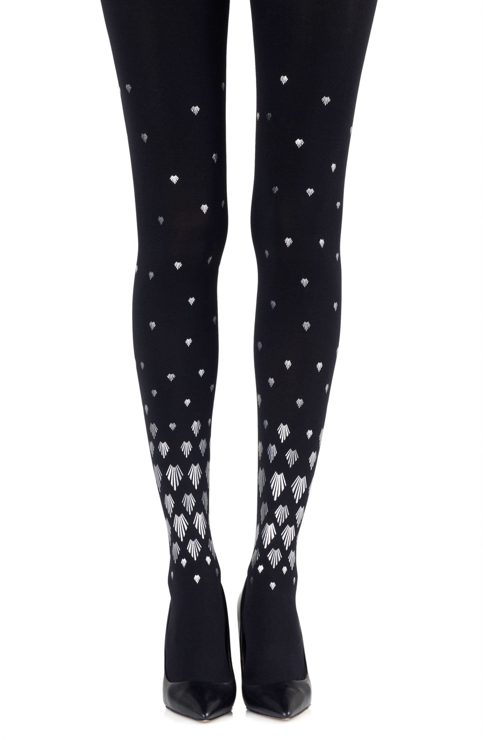 Zohara "Paint It Black" Grey Silver Print Tights