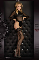 A beautiful pair of hold ups in Nero (Black) that feature an elegant design on the upper thigh and lower leg. A perfect gift for Christmas or Valentine's Day! This product is presented in luxury embossed packaging.