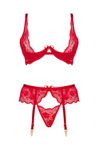 Discover the sensual Rose Set red, an exquisite lingerie set featuring a bra, thong, and garter belt. Crafted from delicate red lace, this alluring design enhances your natural beauty, making you feel feminine and sexy. Perfect for romantic evenings or as a special gift. Key Features: