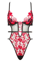 An extremely elegant but also extremely sensual teddy. Evangelina wonderfully emphasizes the charms of the female body. Ruby floral embroidery is beautifully displayed on delicate tulle. Underwired cups beautifully lift the bust. The back boldly reveals the back. A decorative bow with dazzling diamante adds charm to it. Adjustable straps and back closure by hook & eye with three adjustable. Set in the elegant packaging with the picture presenting the product marked with the hologram from the logo Beauty Night Fashion. Bag-pouch for storage or laundry included.