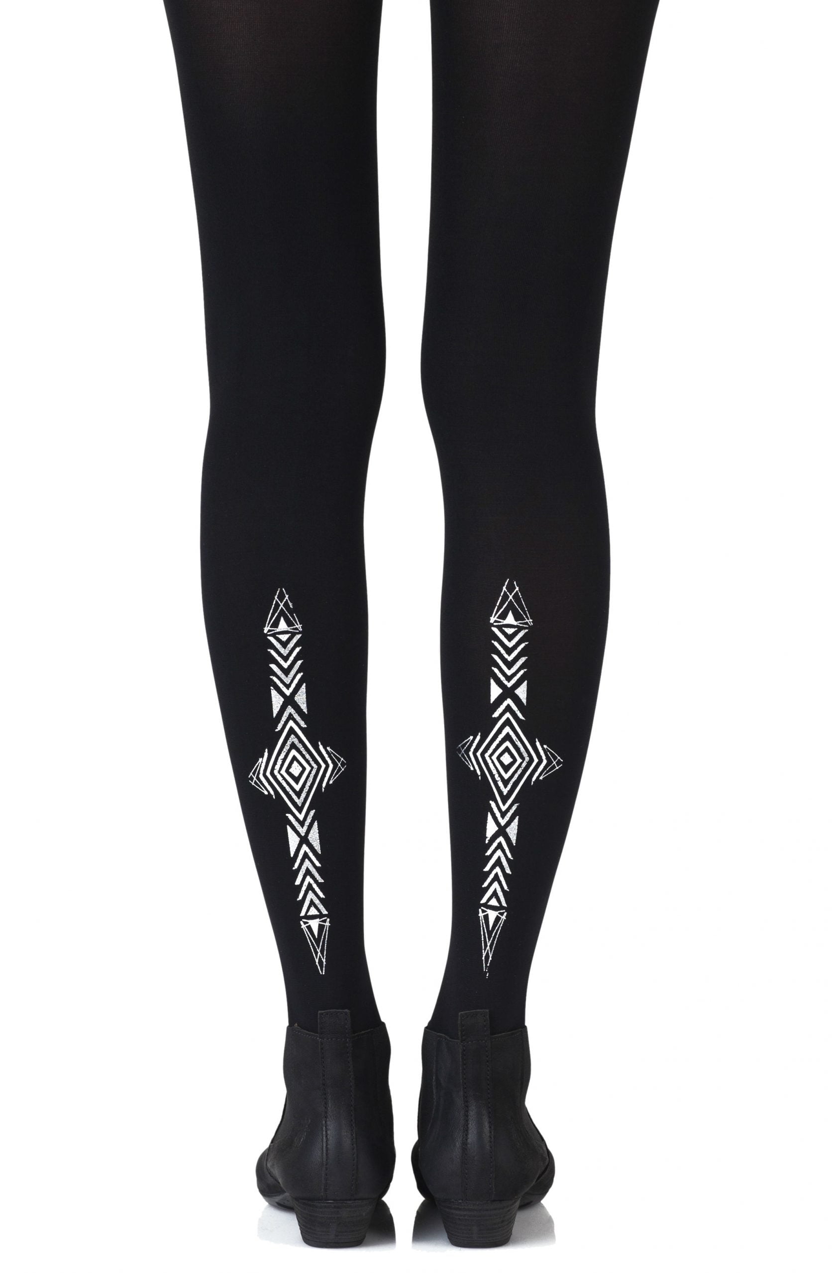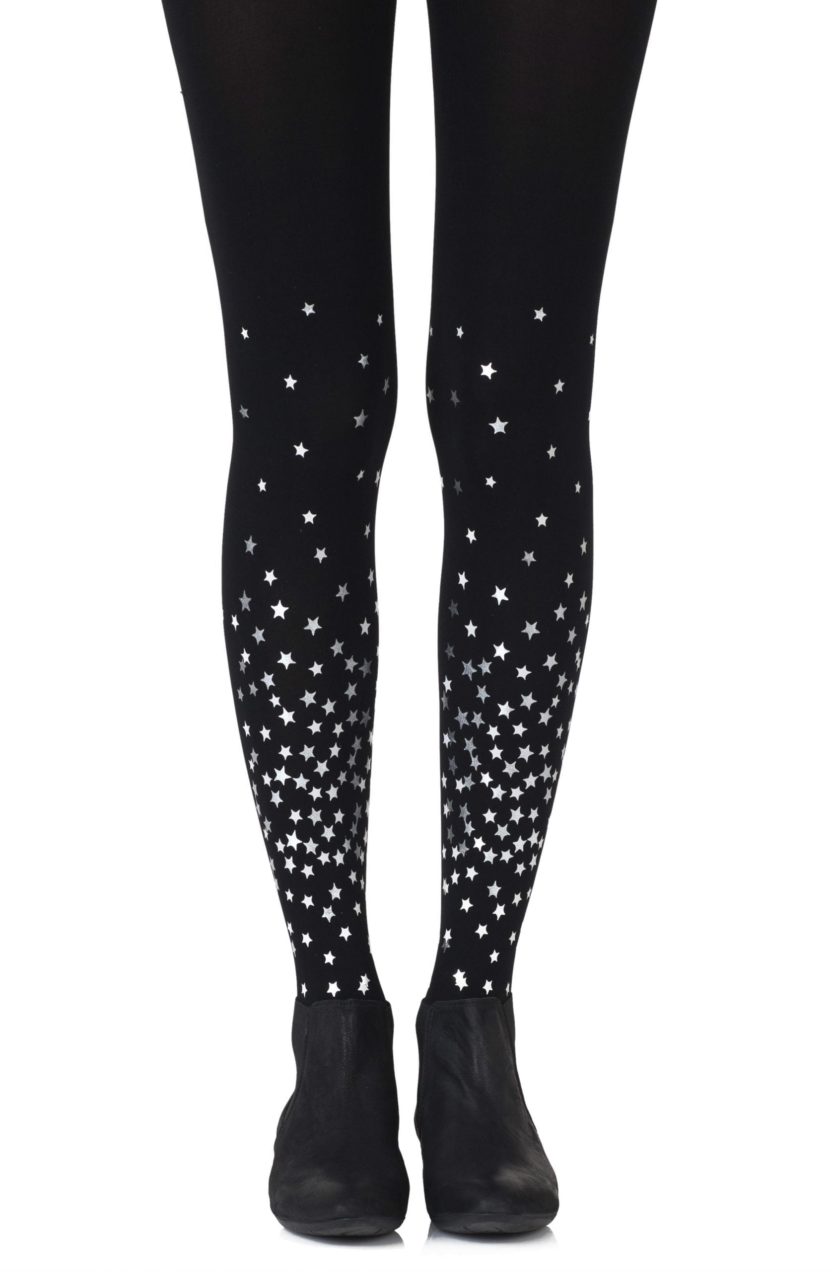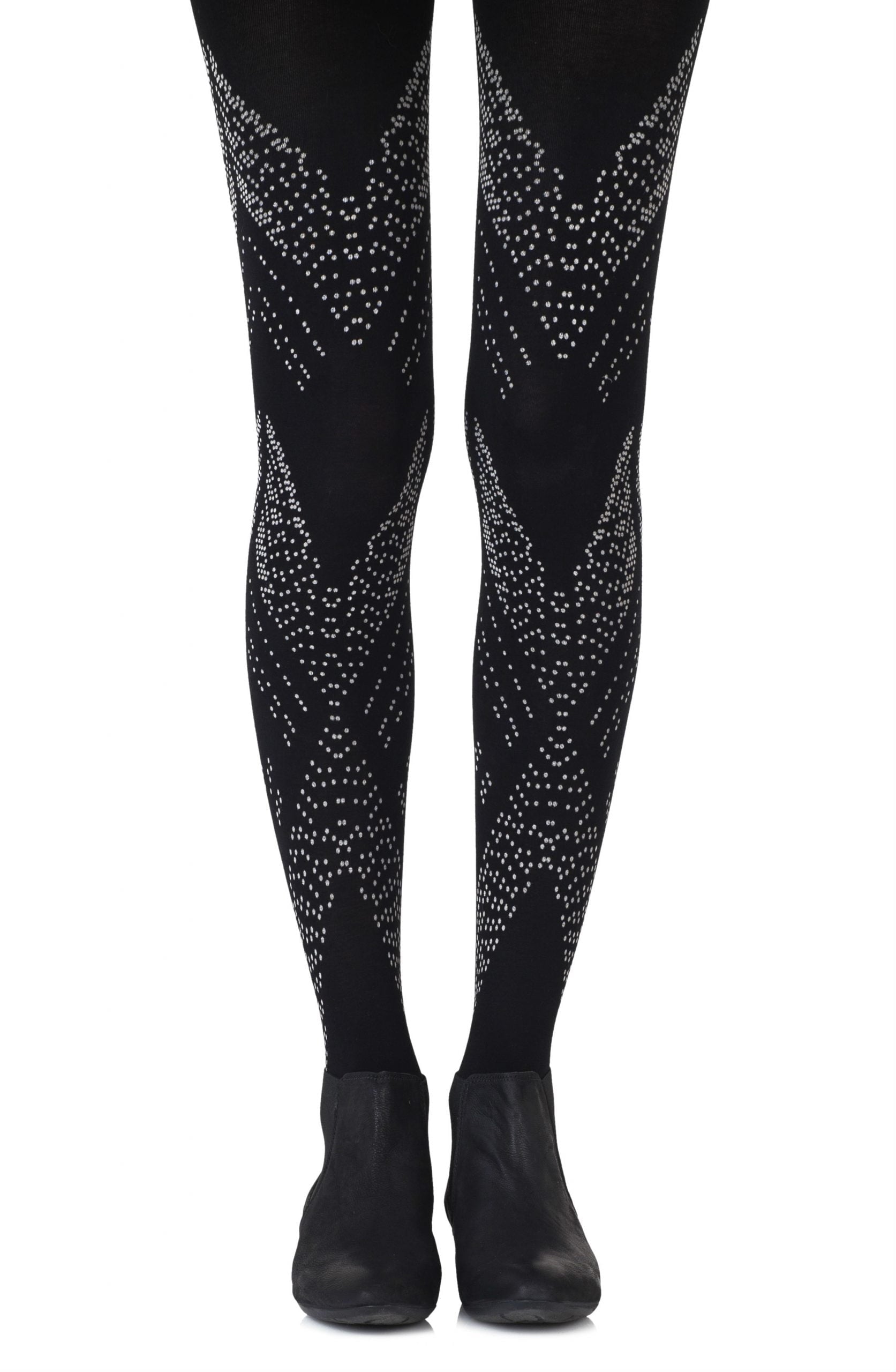 Zohara "Sock It To Me" Grey Silver Print Tights