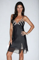 Extremely elegant nightdress made of delicate satin combined with transparent chiffon at the bottom. The cups are decorated with an intriguing lace embroidery, which is also located just above the opening at the bottom of the nightdress.... stunningly gorgeous!   The nightdress has adjustable shoe string straps.    Cleopatra is packed in tissue paper and an elegant box making her ideal as a gift.  Please see related products for the matching Cleopatra dressing gown.