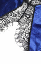 Indulge in luxury with our Plus Size Rich Blue Gartered Babydoll Set, complete with a matching thong. Adorned in shimmering fabric and delicate eyelash lace, this alluring ensemble features an open front and strappy back for a hint of seduction in its elegant design. With attached garters, it's a perfect blend of sophistication and allure, ideal for enhancing your intimate moments in captivating blue (stockings not included).