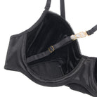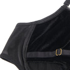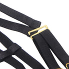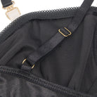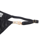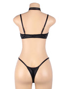 Indulge in bold elegance with this luxurious black bra and thong set, featuring a soft, velvety feel that adds a touch of sophistication. The structured bra is designed with daring cut-outs, adding a hint of intrigue, while delicate gold hardware details bring a glamorous finish. Complete with a halter-style choker neckline and adjustable straps, this set offers a customised fit that perfectly highlights your curves. The matching high-cut thong is finished with gold accents for a polished look. Ideal for those moments when you want to feel both seductive and effortlessly stylish!