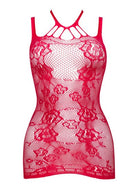Unleash your inner seductress with our Lacey Fishnet Style Dress. This captivating piece features shoulder straps and intricate neck detail, combining elegance with a bold, edgy design. The fishnet style fabric offers a tantalising glimpse of skin, while the lace accents add a touch of sophistication. Perfect for a daring night out or a private evening in, this dress is designed to make a statement and leave a lasting impression.