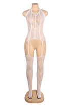 Ideal for layering or wearing alone, this halter neck floral bodystocking is a statement of sensuality and sophistication. A must-have for those looking to elevate their lingerie collection with something unforgettable. (please note, the thong is the models own and not included).