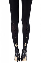 Subtle yet sexy the Dot Calm tights feature a reversible metallic print that will give you just the right amount of style. Colour: Black tights with Gold print. Thickness: 120 denier. No doubt you will shine with our metallic prints. Please note that these prints require extra care when washing and will naturally fade with wear. Unless they have X-ray vision no one will be able to see through these opaque tights. Is the party in the front or the back? You choose with reversible tights where to place all the fun. Hand print no two are the same.