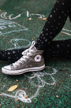 Paparazzi awaits with the Hollywood Boulevard tights that feature an allover star print. Put on oversized sunglasses and let them snap away. Colour: Black tights with Light Grey print. Thickness: 100 denier. Your entire leg will be getting Zohara love with allover prints. Both sides are not created equal with allover tights so please look at the foot of the tights before wearing to ensure you don't step on the print. (The front print will be lower than the back.) Made from Cotton. Unless they have X-ray vision no one will be able to see through these opaque tights. Hand print no two are the same.